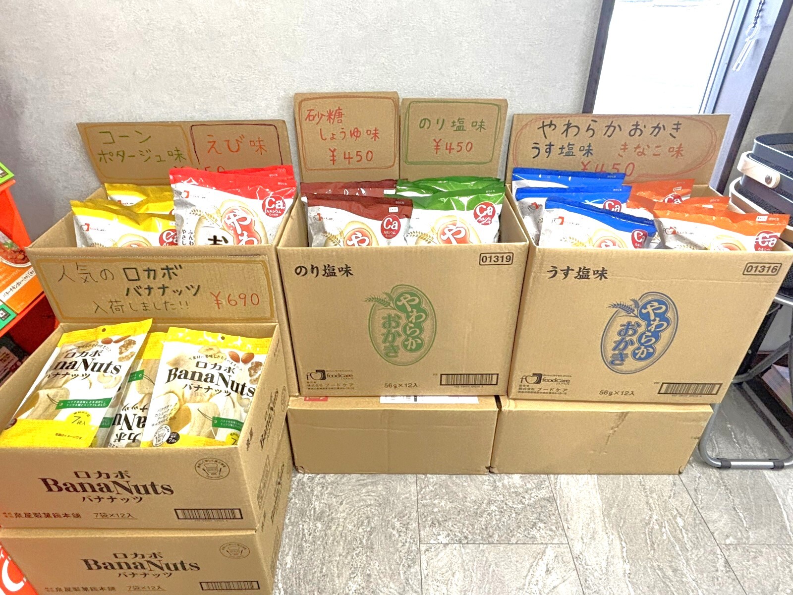おかき等のお菓子も販売しております。